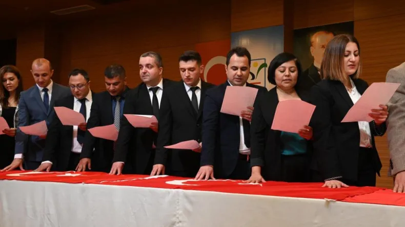 Yeni memurlar, Atatürk Kültür Merkezi’mizde Türk Bayrağı eşliğinde düzenlenen törenle yemin ederek görevlerine başladı. Yemin törenine Manavgat Belediye Başkanı Şükrü Sözen, belediye başkan yardımcıları ile belediye personelleri katıldı. Yemin töreni öncesinde konuşan Manavgat Belediye Başkanı Şükrü Sözen, “Sizler kadar bende heyecanlıyım. Sizlerle Manavgat’a hizmet etme noktasında yol arkadaşlığı yapmaktan gurur duyuyorum.Yeni memurlarımızın vatanına, milletine, bayrağına, Cumhuriyet ve Atatürk değerlerine yürekten bağlı birer hizmet neferi olacağına inancımla, hayırlı uğurlu olmasını diliyorum” dedi.
