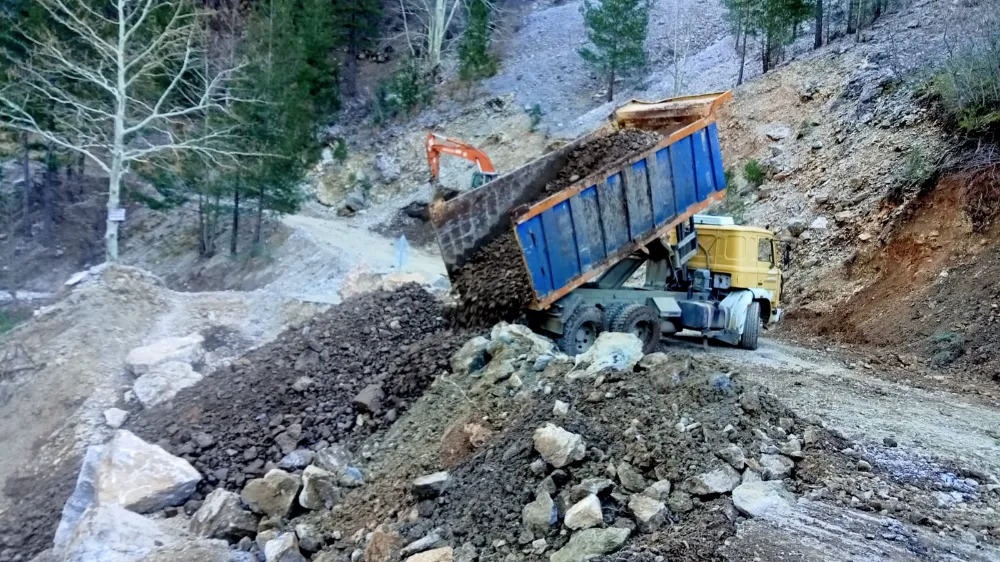 Büyükşehir Belediyesi Yol Yapım Bakım ve Onarım Dairesi Başkanlığı Alanya ekipleri, farklı noktalarında göçük ve heyelan nedeniyle bozulmalar meydana gelen Taşatan yolunda iş makineleriyle taş ve toprak dolgu çalışması yapıyor. Yolun güvenli hale getirilmesi için başlatılan çalışmaların hafta boyunca devam edeceği bildirildi.