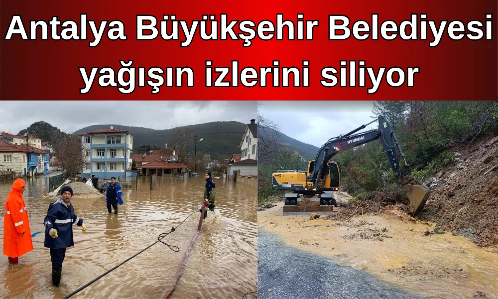 Antalya’da etkili olan şiddetli yağışların ardından oluşan sel ve taşkınlara müdahale eden Antalya Büyükşehir Belediyesi ekipleri, özellikle kırsal mahallelerde hasar gören yolları onarıyor, taşkın sularını tahliye ediyor.