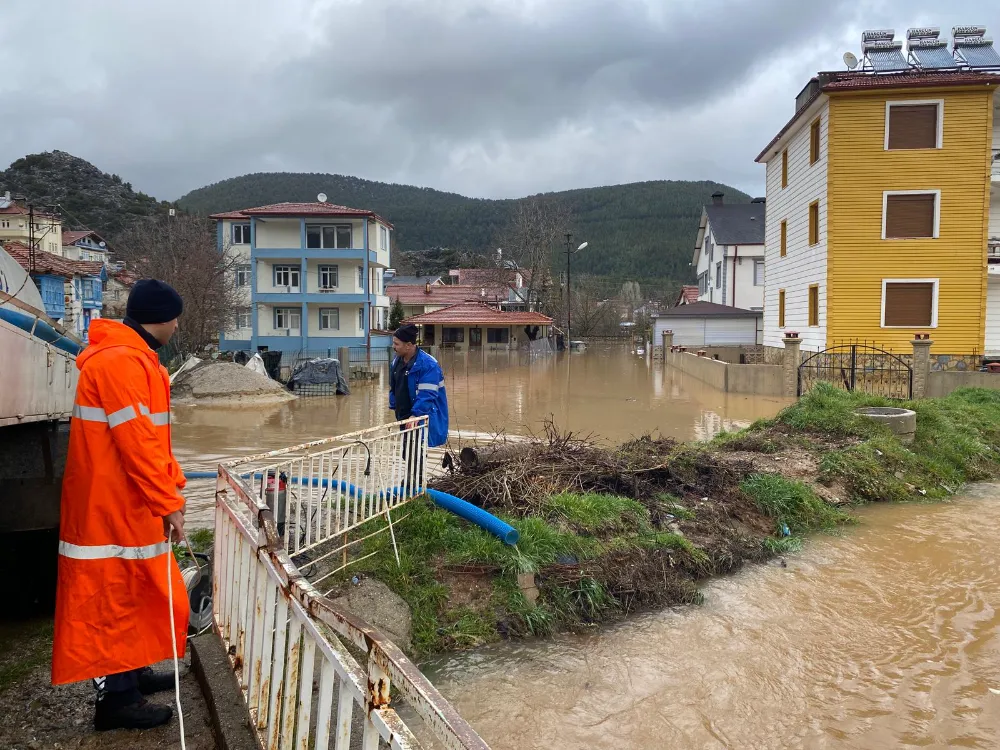 Taşkın sularının tahliyesi, zarar gören alanların temizlenmesi ve güvenlik önlemlerinin alınması için ekiplerin sahadaki yoğun mesaisi sürüyor.