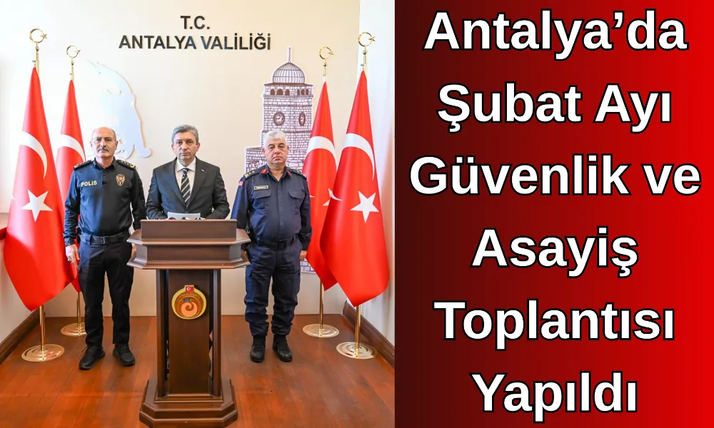 İçişleri Bakanlığı’nın Türkiye’nin Huzuru Projesi kapsamında düzenlenen Antalya’nın Huzuru Güvenlik ve Asayiş Bilgilendirme Toplantısı gerçekleştirildi. Antalya’da düzenlenen toplantıda, Şubat ayına ilişkin güvenlik ve asayiş verileri kamuoyuyla paylaşıldı.