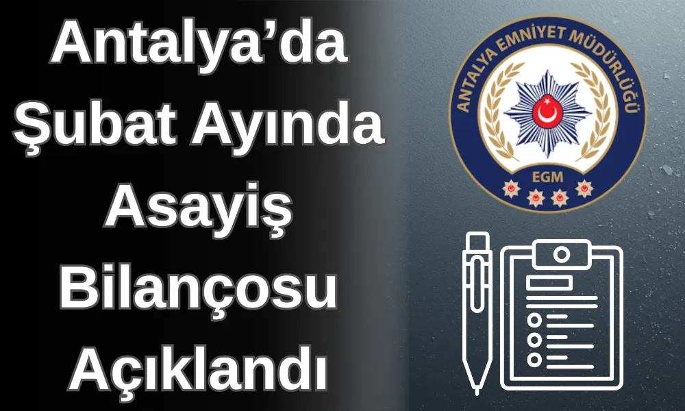 Antalya’da polis, jandarma ve sahil güvenlik birimlerinin 1–28 Şubat 2026 tarihleri arasındaki çalışmalarına ilişkin asayiş raporu açıklandı. Yapılan açıklamaya göre il genelinde güvenlik güçleri tarafından çok sayıda operasyon gerçekleştirilirken, aranan binlerce kişi yakalandı ve çok sayıda suç unsuru ele geçirildi.