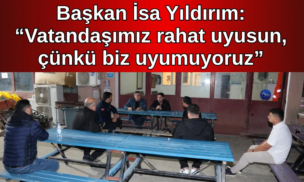 İsa Yıldırım, Meteoroloji 4. Bölge Müdürlüğü tarafından yapılan şiddetli yağış uyarısının ardından belediye ekipleriyle birlikte gece boyunca sahada incelemelerde bulundu. Olası olumsuzluklara karşı tüm ekip ve iş makineleriyle hazırlıklarını tamamlayan belediye, geceyi teyakkuz halinde geçirdi.