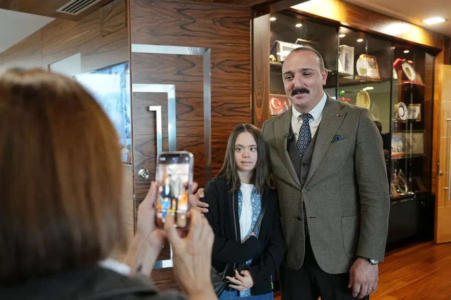 Konyaaltı Belediye Başkanı Cem Kotan, Antalya Down Sendromlular ve Engelliler Derneği Başkanı Gülcan Ay ile özel gereksinimli bireyler ve ailelerini makamında ağırladı. Başkan Kotan, tüm bireyler için eşitlik anlayışıyla hareket ettiklerini ve bu farkındalıklarının bir günle sınırlı olmadığının altını çizdi. Derneğin çalışmalarıyla ilgili Dernek Başkanı Gülcan Ay’dan bilgi alan Kotan, kendilerinin daima yanında olduklarını vurguladı. Buluşmaya katılan tüm katılımcılar, hassasiyetinden dolayı ve ilgisi için Başkan Kotan’a teşekkür etti. Öte yandan ziyaretçiler, dernek içerisindeki üreten eller atölyesinde hazırlanan malzemeleri Kotan’a hediye etti.