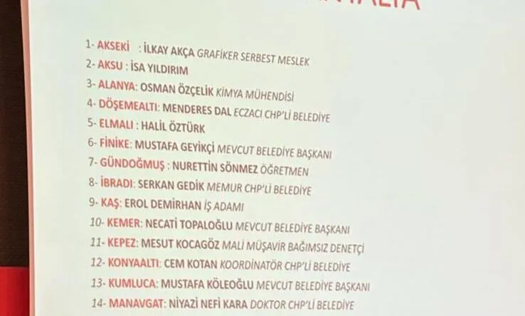 CHP PM’de Antalya 15 ilçe belediye başkan adayı belli oldu.