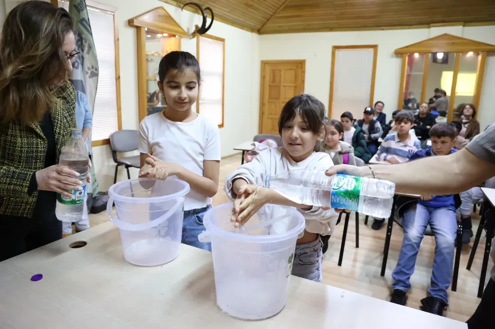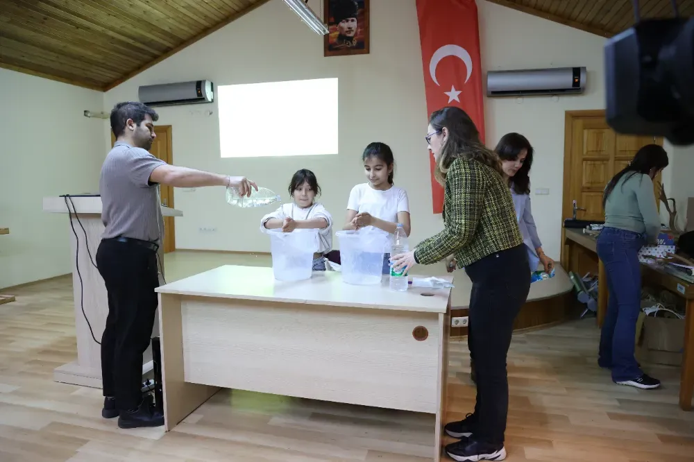 Etkinlikte teorik bilgilerin yanı sıra uygulamalı çalışmalar da yer aldı. Çocuklar, suyun doğadaki döngüsünü interaktif etkinliklerle öğrenirken, düzenlenen eğitici oyunlarla keyifli vakit geçirdi.