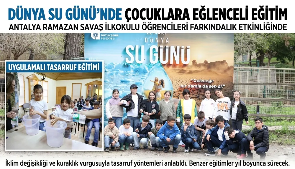 Antalya’da 22 Mart Dünya Su Günü kapsamında çocuklara yönelik farkındalık etkinliği düzenlendi. Antalya Ramazan Savaş İlkokulu öğrencileri, Antalya Doğal Yaşam Parkı’nda gerçekleştirilen programda hem eğlendi hem de suyun önemi hakkında bilgi edindi.