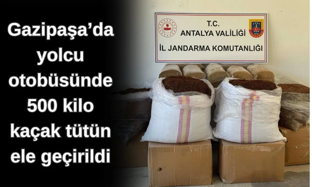 Antalya’nın Gazipaşa ilçesinde düzenlenen operasyonda bir yolcu otobüsünde 500 kilogram kaçak tütün ele geçirildi.