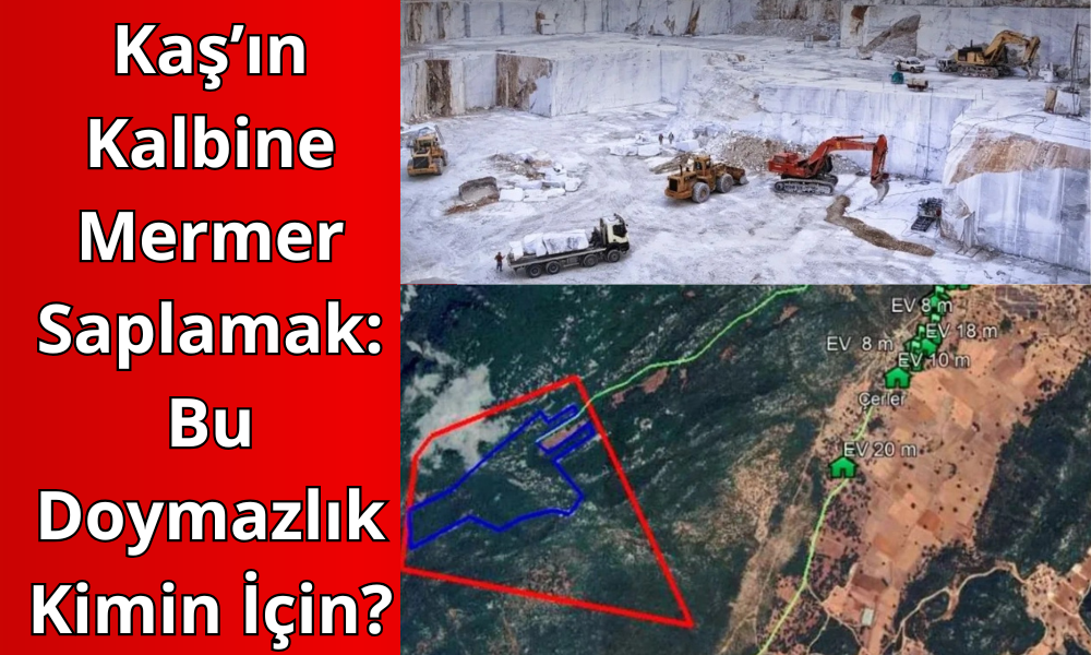 Antalya, dünyanın gözbebeği; Kaş ise o gözün feridir. Ancak son gelen haberler gösteriyor ki, birilerinin kâr hırsı ne doğa dinliyor ne de tarih. Kaş’ın Çerler ve Ahatlı mevkilerinde, tam 140 futbol sahası büyüklüğünde bir alan mermer ocağına kurban ediliyor.