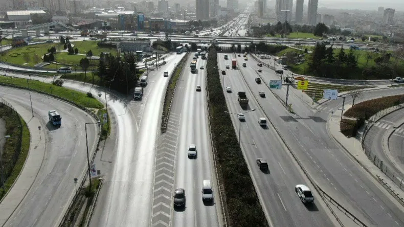 Ramazan ayının ilk gününde İstanbul'da trafik yoğunluğunun yüzde 20 seviyesinde olduğu görüldü. Araç yoğunluğunun az olduğu ve araç seyrinin rahat sağlandığı E-5 karayolu havadan görüntülendi.