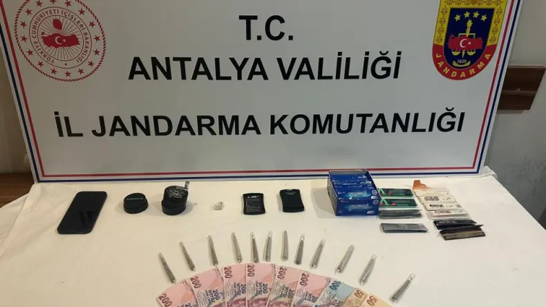 Antalya İl Jandarma Komutanlığı, Kemer İstihbarat, Kemer JASAT ve Kemer İlçe Jandarma Komutanlığı ekipleri tarafından, A.K. isimli şahsın ticari taksi ile uyuşturucu getireceği bilgisinin alındı. İhbar üzerine ticari taksi yol emniyet ve kontrol noktasında durduruldu. Yapılan aramalarda; 12 adet satışa hazır şekilde sarılmış esrar olduğu değerlendirilen madde, 1 adet hassas terazi, 2 adet esrar öğütücü, 43 paket sigara kağıdı, 10 gram skunk olduğu değerlendirilen madde ve bin 400 TL para ele geçirildi.