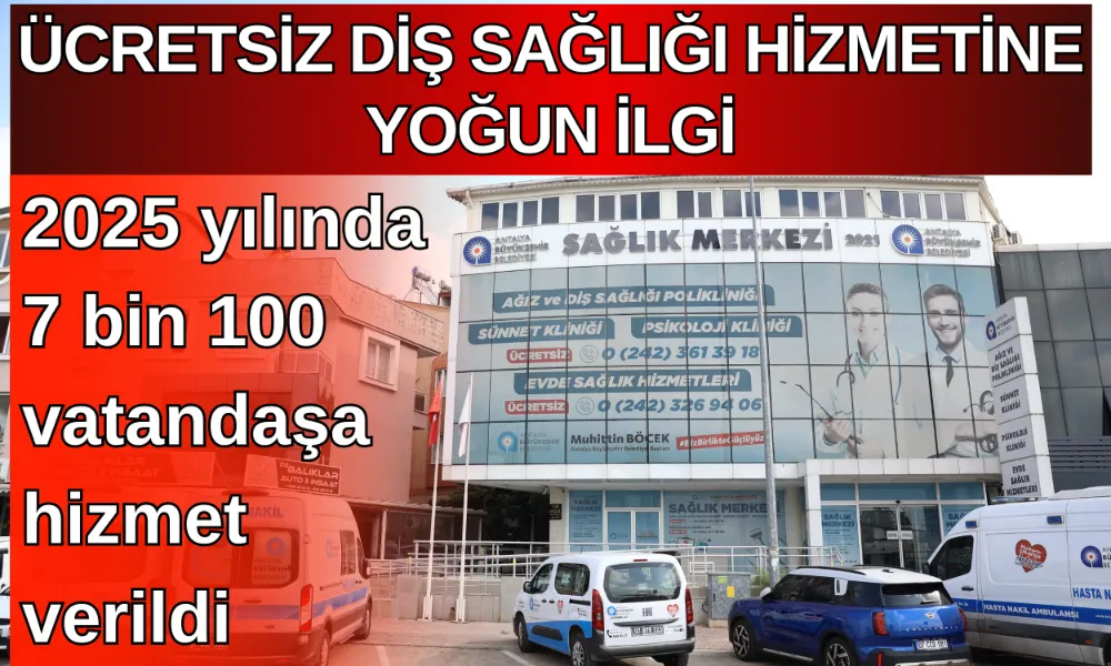 Antalya Büyükşehir Belediyesi’nin sosyal belediyecilik anlayışıyla 2021 yılında hizmete açtığı sağlık merkezi, ücretsiz diş muayenesi ve tedavi hizmetleriyle 2025 yılında da vatandaşlardan yoğun ilgi gördü. Ağız ve Diş Sağlığı Polikliniği’nde yıl boyunca 7 bin 100 hastaya hizmet verilirken, 28 bin işlem gerçekleştirdi. Hizmet, hem çocuklar hem yetişkinler tarafından yoğun ilgi ve memnuniyetle karşılanıyor. Antalya Büyükşehir Belediyesi, sağlık hizmetlerine erişimde fırsat eşitliği sağlamak amacıyla hayata geçirdiği ücretsiz diş sağlığı uygulamasıyla vatandaşların yüzünü güldürüyor. Hizmete açıldığı günden bu yana binlerce vatandaşı ağırlayan sağlık merkezi, özellikle dar gelirli ve dezavantajlı gruplar için önemli bir ihtiyacı karşılıyor.