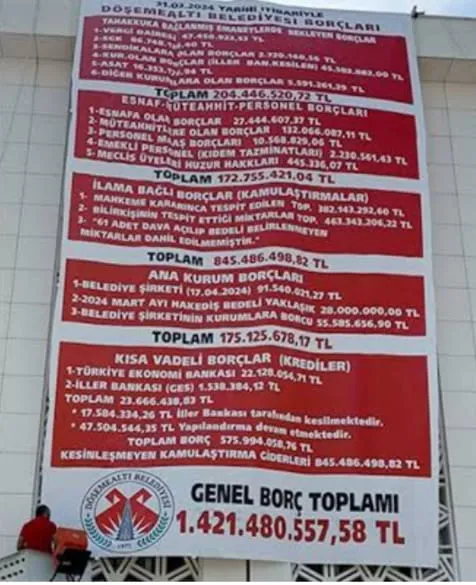 Yeni yönetimin göreve gelir gelmez belediyenin mali tablosuna ilişkin kamuoyuna yaptığı açıklama büyük yankı uyandırdı. Belediye binasına asılan afişte önceki dönemden kalan borçların kalem kalem açıklanması, ilçede ve siyasi çevrelerde geniş tartışmalara neden oldu. Bu durum yalnızca mali bir bilgilendirme olarak değil, aynı zamanda aynı partiden gelen iki yönetim arasında açık bir siyasi hesaplaşma olarak da yorumlandı.
