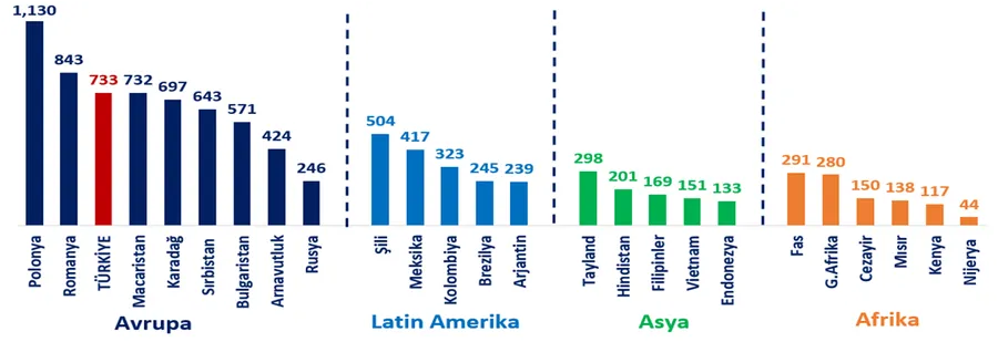 Türkiye, 2025 yılı itibarıyla asgari ücret seviyesinde pek çok gelişmekte olan ülkeyi geride bıraktı. Uluslararası verilerle hazırlanan karşılaştırmalı grafiğe göre Türkiye, 733 dolarlık brüt asgari ücret ile Avrupa’da Macaristan, Karadağ, Sırbistan ve Bulgaristan gibi ülkelerin üzerine çıkarken; Latin Amerika, Asya ve Afrika’daki birçok ülkenin de önüne geçti.