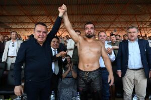 İlk kez altın kemerin sahibi olan Yusuf Can Zeybek büyük sevinç yaşadığı güreş sonrasında takım arkadaşı İsmail Balaban’ın elini öptü. Yusuf Can Zeybek desteklerinden dolayı Başkan Böcek’e teşekkür etti. Başkan Muhittin Böcek de iki güreşçisini bu güzel müsabakadan dolayı tebrik ederek, başarılarından dolayı kutladı.