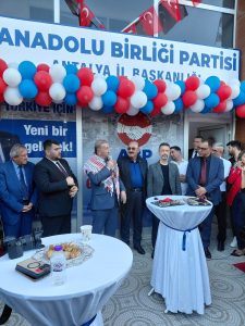 Anadolu Birliği Partisi (ABP) Antalya İl Başkanlığı, yoğun katılımla düzenlenen törenle açıldı. Açılışa ABP Genel Başkanı Bedri Yalçın, genel başkan yardımcıları, il başkanları, Antalya Kepez eski Belediye Başkanı Erdal Öner, Muratpaşa Belediye Başkan Yardımcısı, kadın ve gençlik kolları ile çok sayıda partili katıldı. Açılışta konuşan ABP Antalya İl Başkanı Reşide Tuğba Çıtır, katılımcılara teşekkür ederek şunları söyledi: “Bugün burada gördüğümüz ilgi, Anadolu Birliği Partisi’nin gücünü ve birlik anlayışını yansıtıyor.” Genel Başkan Bedri Yalçın ise açılışta yaptığı konuşmada, “Açılışını yapmaktan büyük mutluluk duyuyorum” dedi ve kurdelenin kadınlar tarafından kesilmesini isteyerek törene anlam kattı. Açılışın ardından davetliler yeni il binasını gezerek partililerle sohbet etti.