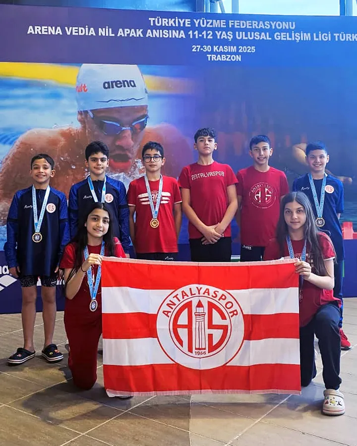 Türkiye Yüzme Federasyonu tarafından düzenlenen 11–12 Yaş Ulusal Gelişim Ligi, 27–30 Kasım 2025 tarihleri arasında gerçekleştirilen final etabı ile tamamlandı. Bolu Kartalkaya’da meydana gelen otel yangınında hayatını kaybeden 2014 doğumlu yüzme sporcusu Vedia Nil Apak’ın anısına memleketi Trabzon’da düzenlenen final müsabakalarında, Antalyaspor yüzme takımı 9 sporcu ve 2 antrenör ile mücadele etti. Organizasyonun formda ismi olan kırmızı beyazlı sporcu Asya Kaplanoğlu, biri birincilik olmak üzere elde ettiği dört Türkiye derecesiyle dikkat çekti.