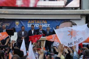 AK Parti Antalya İl Başkanı Ali Çetin, Kepez Belediye Başkanı Hakan Tütüncü ve milletvekillerinin de eşlik ettiği mitingde Millet İttifakı adayı Kemal Kılıçdaroğlu'nu da Azerbaycan üzerinden eleştiren Çavuşoğlu, "Türk'ün yolu kardeşlerimizle orta koridordan geçer. Türk yurdu toprağı Şuşa’dan geçer. Kemal Kılıçdaroğlu çıktı elinde bir harita. ‘Bu benim dahi projem’ dedi. Bir bakıyoruz Azerbaycan baypas edilmiş. Can Azerbaycan’dan ne istiyorsun Kılıçdaroğlu? Kardeşlerimizle derdin ne? Azerbaycan topraklarını kurtarırken ‘Türkiye Azerbaycan’a maalesef yardım etti’ diyenlerden başka bir şey beklenmez" diye konuştu.