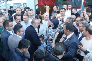 Dışişleri Bakanı Mevlut Çavuşoğlu, partisinin Antalya il başkanlığında düzenlenen bayramlaşma törenine katıldı. Çavuşoğlu, il başkanlığı binası önünde kalabalık bir grup tarafından karşılandı. Kendini bekleyen vatandaşlar ile yakından ilgilenen Bakan Çavuşoğlu, vatandaşlara karanfil dağıtarak Ramazan Bayramını kutladı.